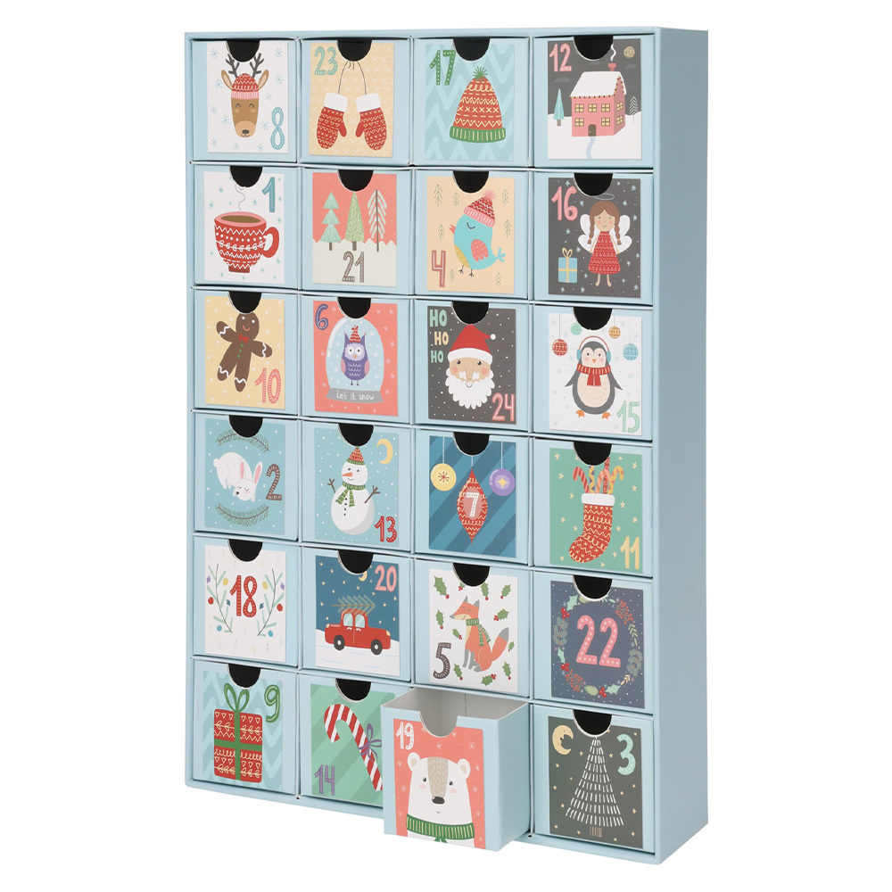 Adventní kalendář s 24 zásuvkami potištěnými vánočními figurkami.Materiál: papír, kartónHmotmost: 610g przeczytaj całość