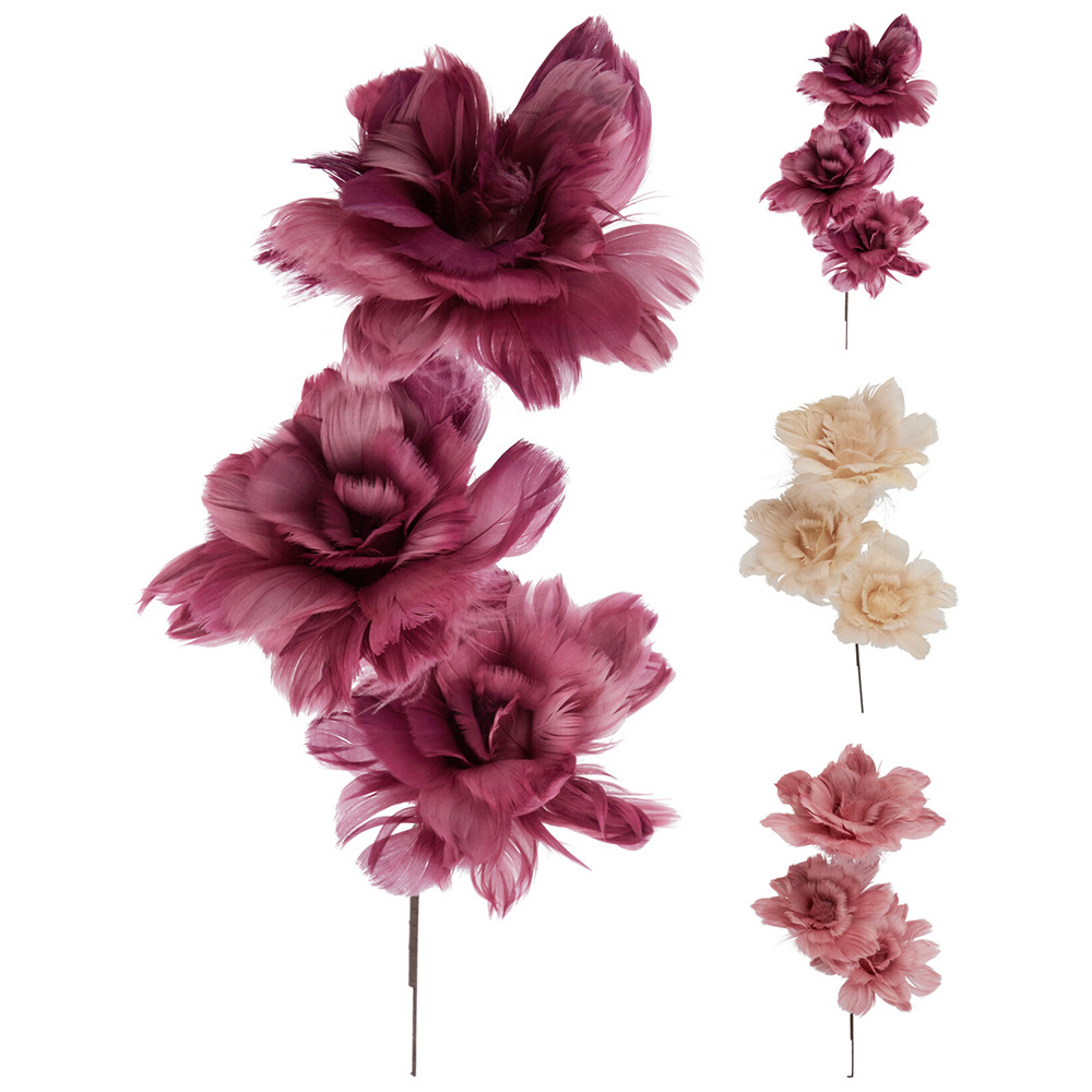 Tři květiny z husího peří na kovovém stonku.barvy: Růžová /Tmavorůžová /Béžovározměr: 8 x 8 x 65 mmbarevnou variantu vyberte v poli nad cenovkouCena je za 1 kus. przeczytaj całość