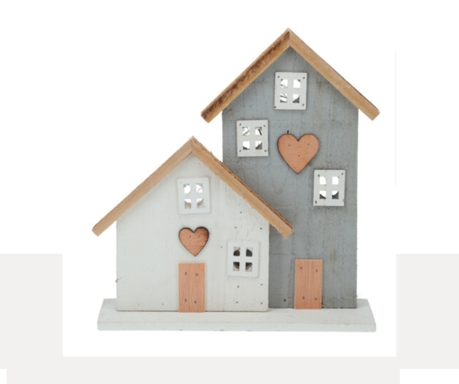 Dřevěné LED domečky s časovačem, 28,5 cm