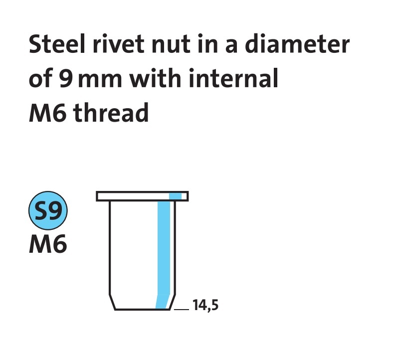Nitonakrętka stalowa Novus:NOVUS nitonakrętka stalowa to stalowa tulejka z gwintem wewnętrznym M6, o zewnętrznej średnicy Ø 9 mm i długości nitowania ok. 14,5 mm. Idealna do montażu w stali — szczególnie tam, gdzie dostęp możliwy jest tylko z jednej strony, np. do mocowania elementów stalowych...