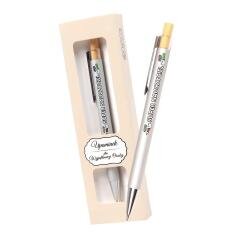 Metalowy, automatyczny długopis DYPLOMAT z nadrukiem Super nauczyciel - jako prezent na różne okazje dla nauczyciela, nie tylko na Dzień Nauczyciela. Długopis koloru srebrnego z wymiennym wkładem typu zenith. Zapakowany w prezentowe etui. przeczytaj całość