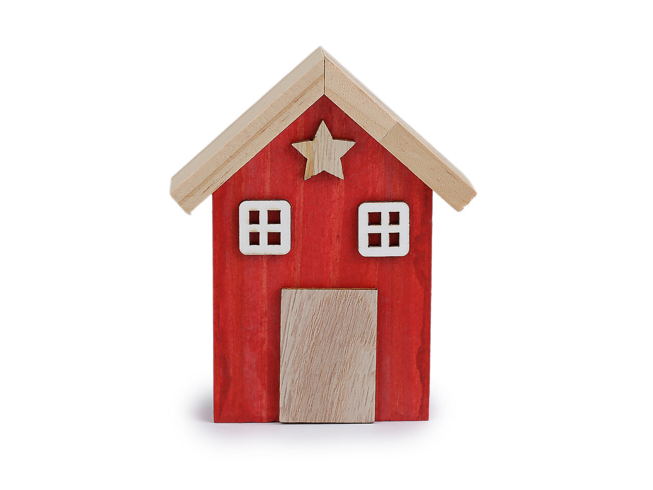 Dekorace celodřevěný domeček - 1 ks - 3 červená hvězda