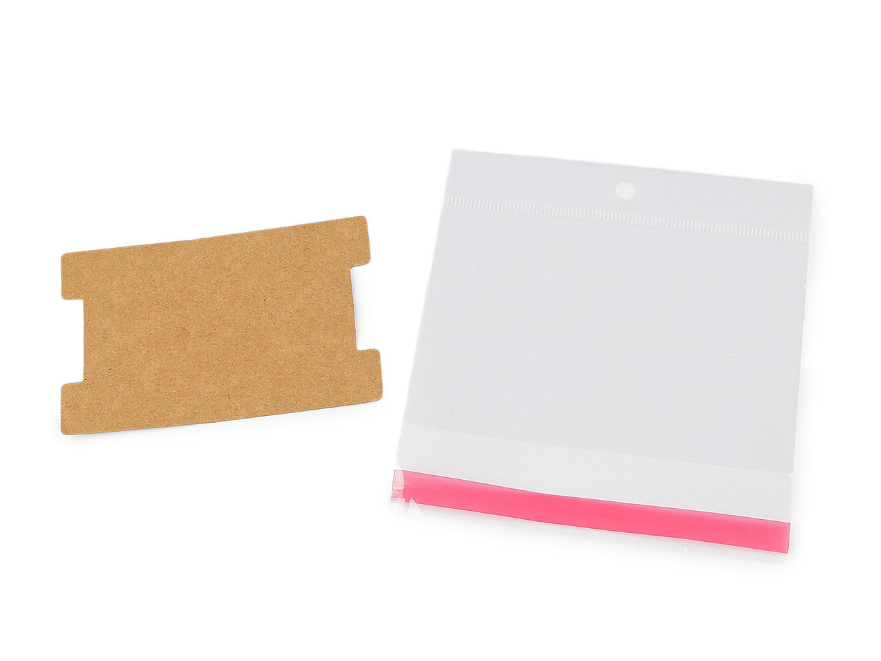 Karta na bižuterii se sáčkem je ideálním pomocníkem pro každého, kdo hledá elegantní a praktický způsob, jak prezentovat a uchovávat šperky. Bižuterní karta je určená na navléknutí náramku nebo gumičky. Je vhodná na prodej či prezentaci vašich výrobků, dá se na ni psát. Povrch karty je hladký. Součástí karty je také sáček s eurozávěsem, který se uzavírá lepicí lištou.