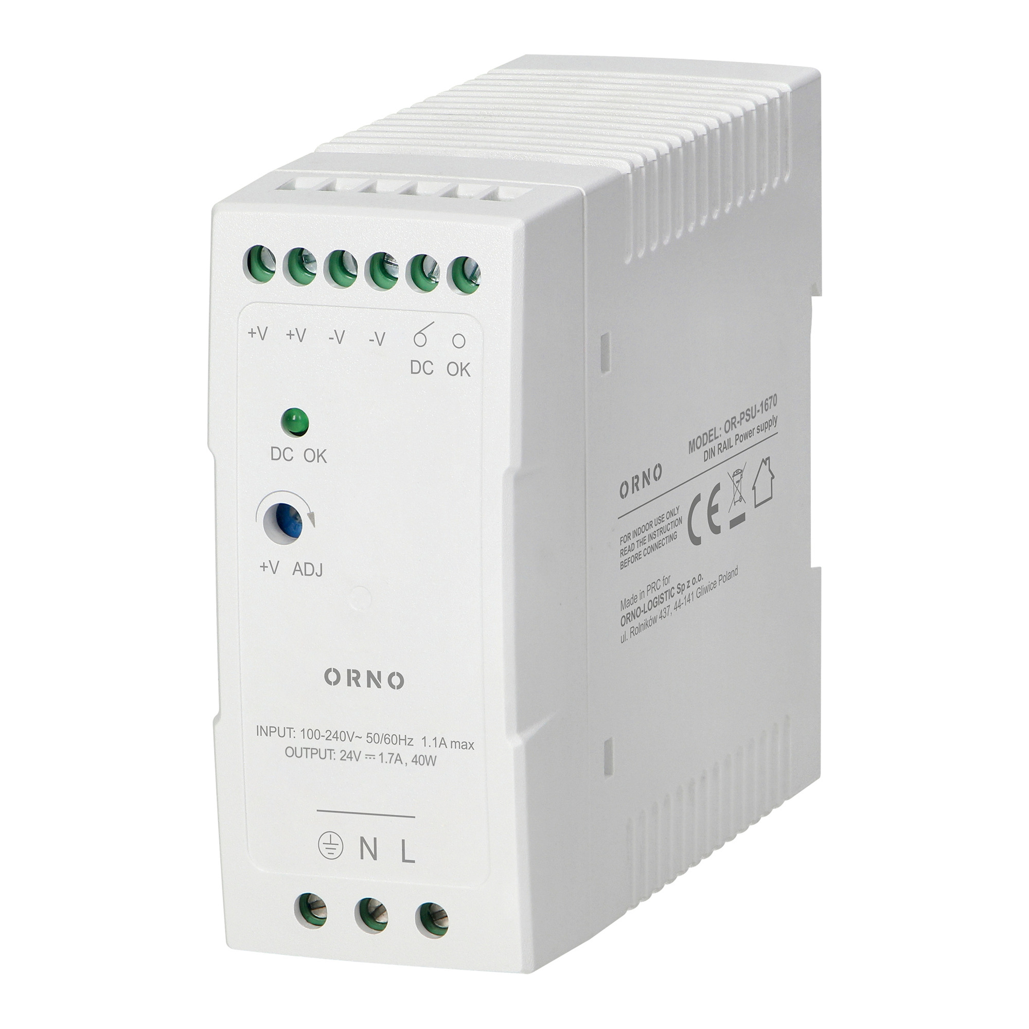 ORNO OR-PSU-1670 Průmyslový zdroj spínaný 24V DC 1,7A 40W na DIN lištu