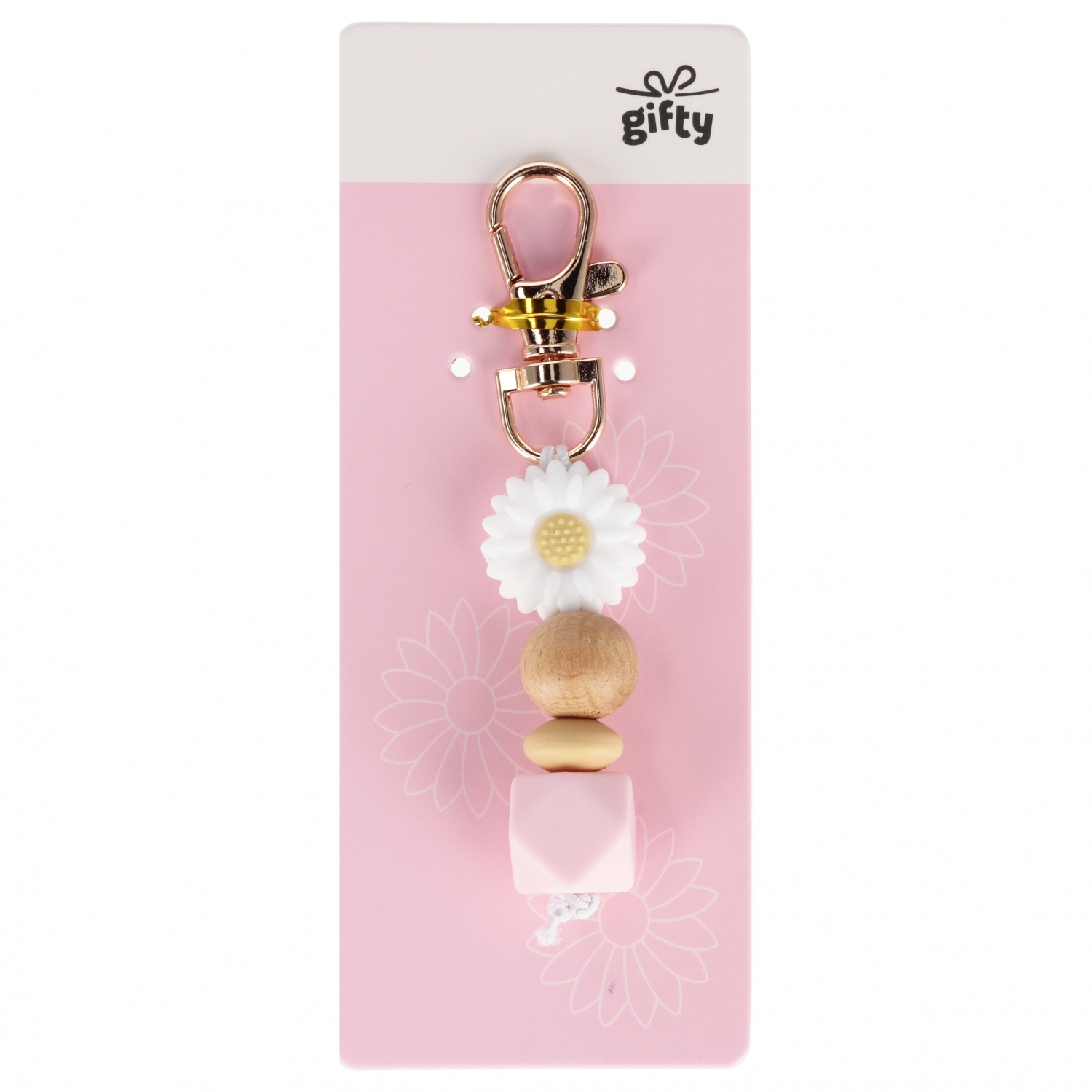 Brelok 6 cm silikonowy/drewniany Kwiaty biały MFP 1042538
