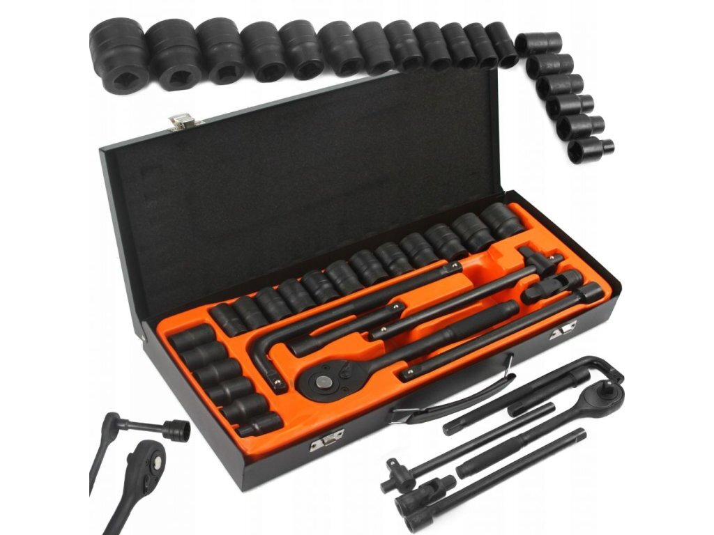 - Kompletní sada skládající se z nástrčných klíčů, ráčny, nástavců, trháku
