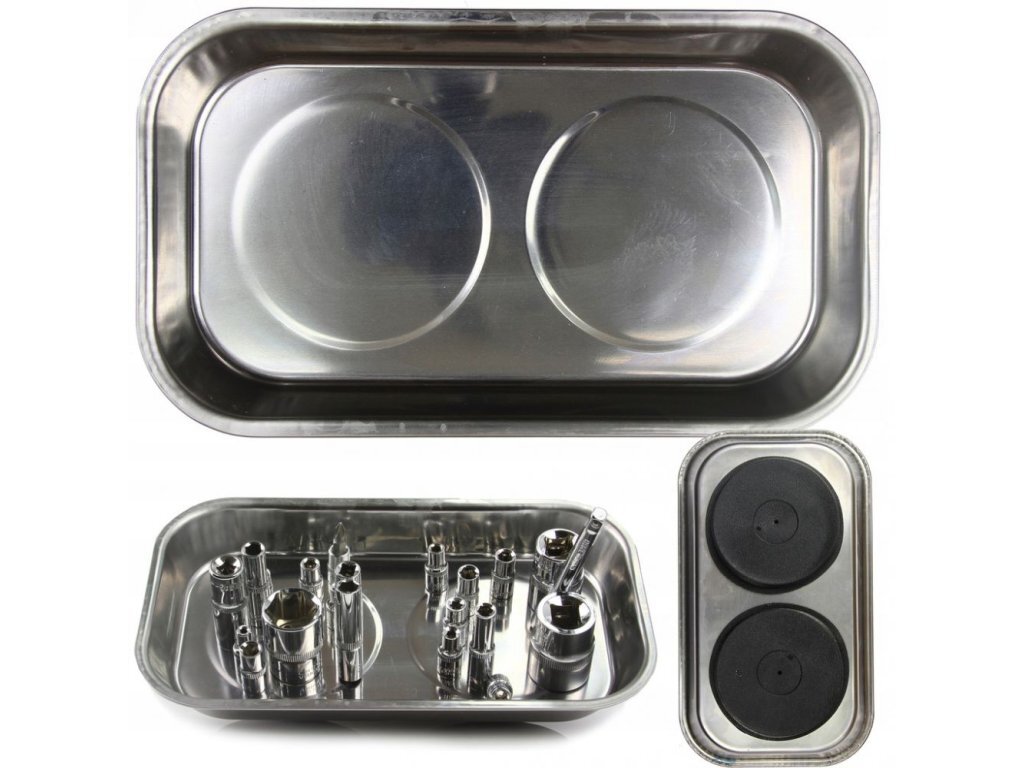 Výborný pomocník do servisu či dílny! Díky magnetickému materiálu se Vám nic nerozsype. Vhodný pro ukládání šroubů, matic, podložek nebo nástavců na šroubovák. Miska pevně drží všechny kovové předměty. Magnety na misce jsou chráněny plastem, který chrání lak před poškrábáním.