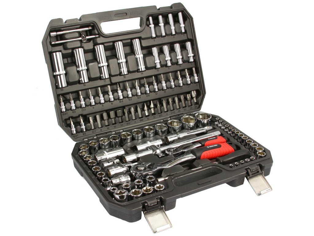 GOLA sada 108 ks nářadí v plastovém kufru MAR-POLProfesionální gola sada MAR-POL obsahuje 108 pečlivě vybraných dílů z chrom-vanadiové oceli (CrV), která zajišťuje vysokou odolnost vůči opotřebení i mechanickému namáhání. Tato sada je určena nejen pro domácí kutily, ale především pro servisy,...
