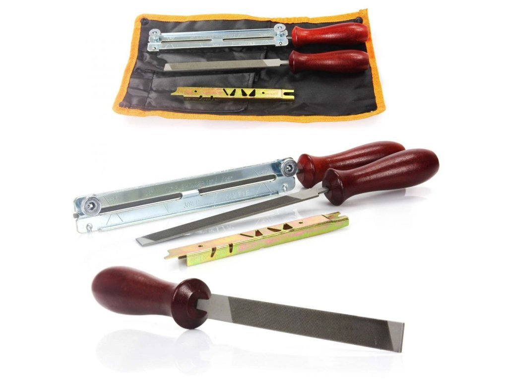 Sada pro ostření a údržbu pilových řetězů a vodicí lišty. Zajištění správné údržby použitého řetězu a lišty. Sada na broušení pilových řetězů usnadní údržbu řezných systémů pily. Sada obsahuje kulatý pilník na ostření řetězu 3/8". Sada na broušení pilových řetězů v šikovném a praktickém kufříku usnadní údržbu řezných systémů pily.