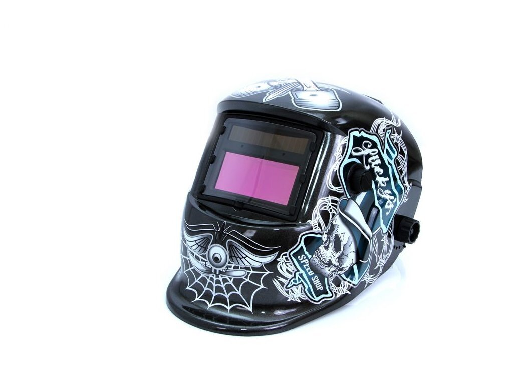 Svářečská kukla samostmívací s potiskem lebka, černo-bílá MAR-POL Svářečská kukla samostmívací představuje nepostradatelný nástroj pro každého, kdo se věnuje svařování, ať už v domácím prostředí kolem domu nebo v profesionální dílně. Tato svářečská kukla je vybavena funkcí automatického stmívání....