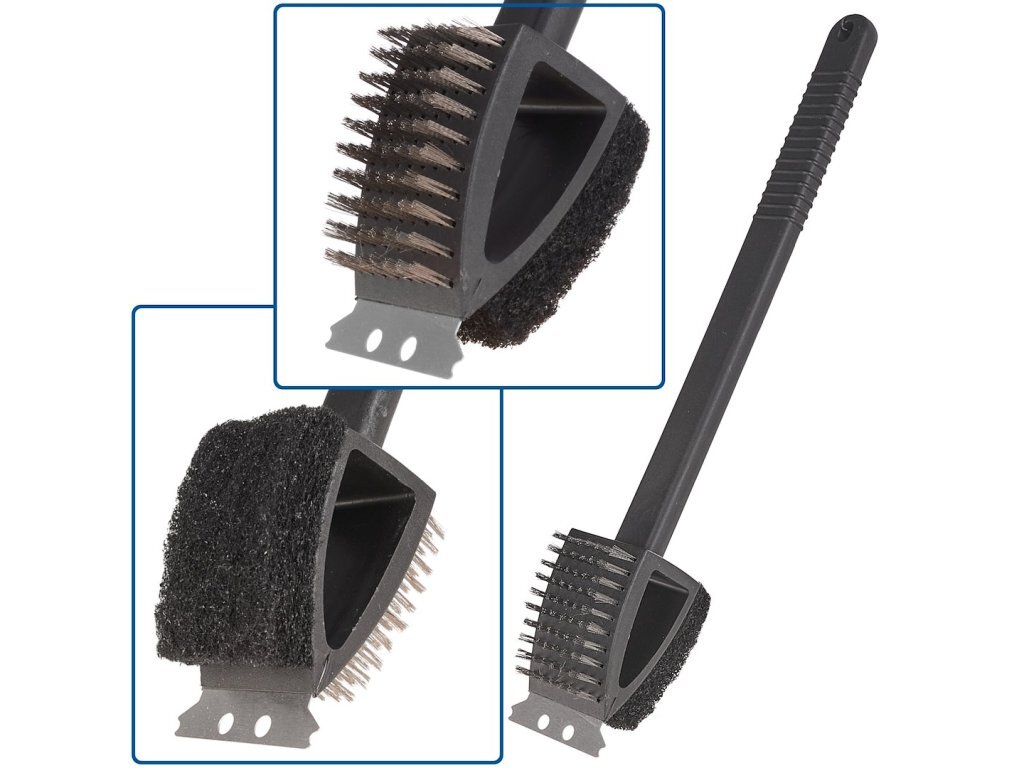 Drátěný kartáč 3v1 na čištění grilu, se škrabkou a houbičkou - GEKO