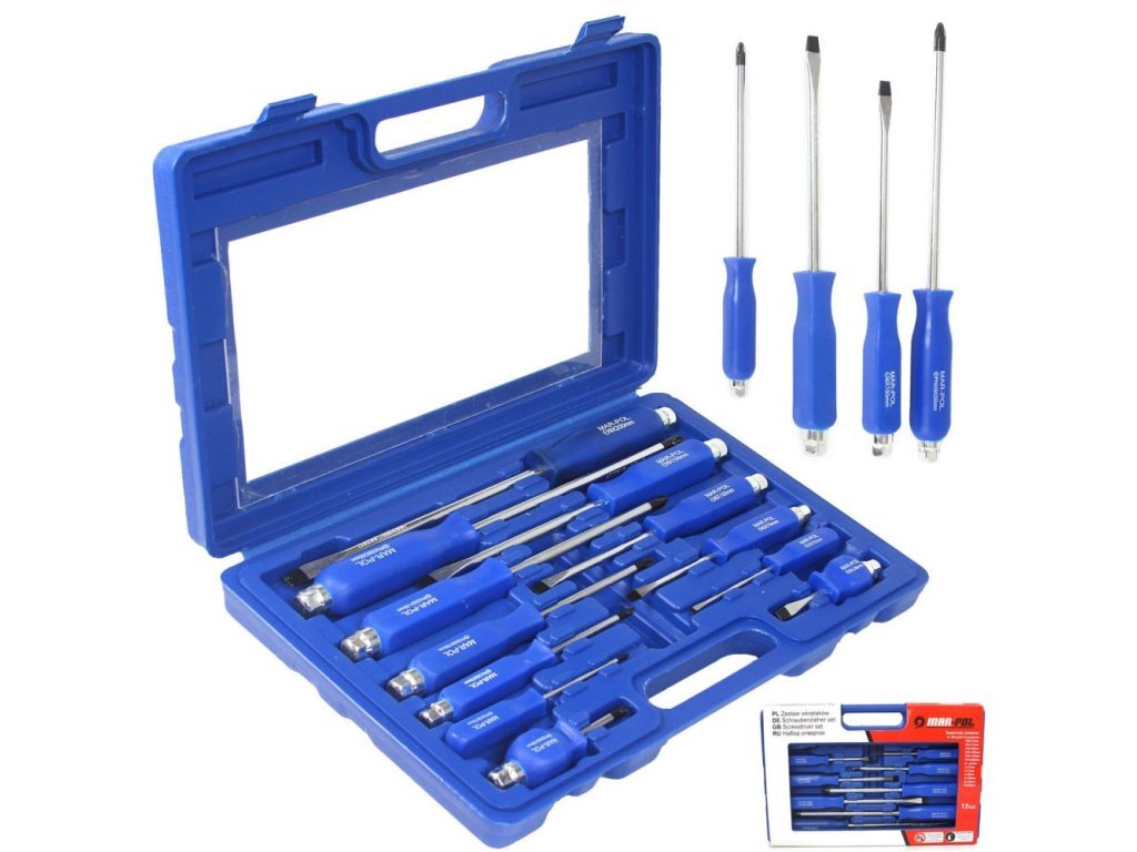 Sada 12ks šroubováků. Materiál CrV, kalené hroty, magnetické.