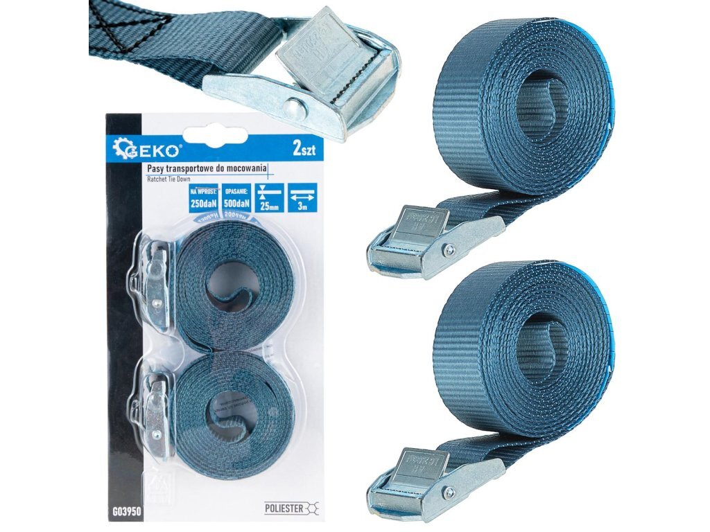Pás upínací 25 mm × 3 m, 250 kg, sada 2 ks - GEKO