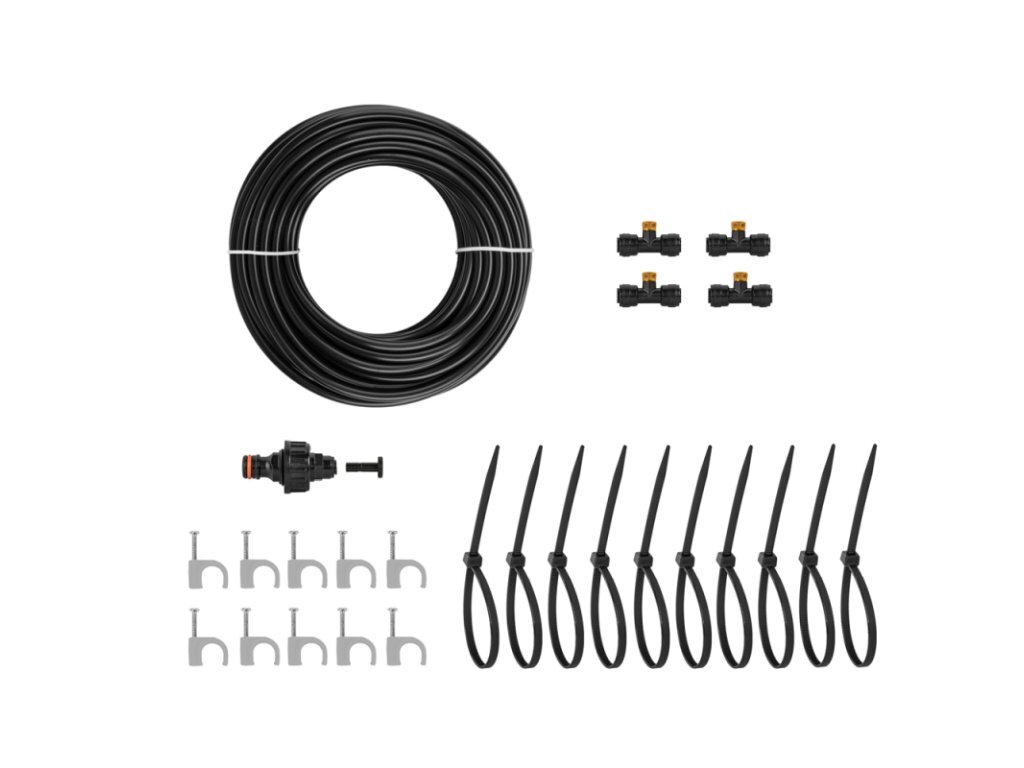 Zahradní vodní mlha 6m BLACK LINEZahradní vodní mlha, která vás příjemně ochladí na terase vašeho domu, restaurace či kavárny, nebo na vaší zahradě. Díky systému pěti nerezových nastavitelných trysek ochladíte vzduch v parném létě o 10°C až 12°C. Připojení je možné přímo na zahradní hadici....