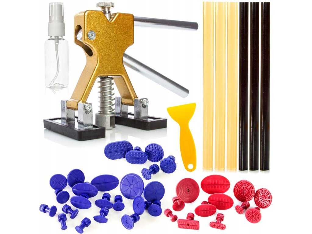 Opravná sada na promáčklin karoserie s vytahovákem - MAR-POLOpravná sada M57454R určená k odstranění promáčklin na karoserii vozu. Sada je snadno ovladatelná a hlavně 100% bezpečná pro lak auta. Sada obsahuje vytahovák na odstranění promáčklin, sadu pryžových podložek různých tvarů a velikostí,...