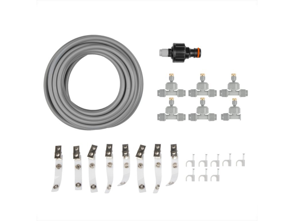 Zahradní vodní mlha 8m WHITE LINEZahradní vodní mlha, která vás příjemně ochladí na terase vašeho domu, restaurace či kavárny, nebo na vaší zahradě. Díky systému pěti nerezových nastavitelných trysek ochladíte vzduch v parném létě o 10°C až 12°C. Připojení je možné přímo na zahradní hadici....