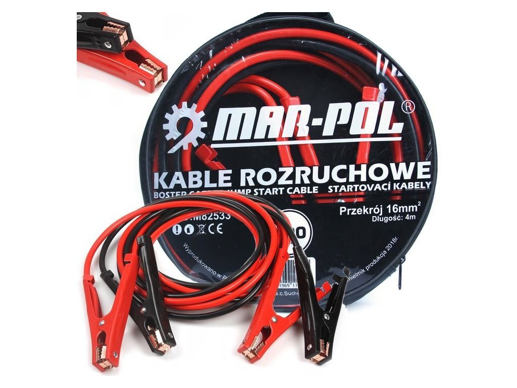 Startovací kabely 800A, 4m, 16mm2 MAR-POLStartovací kabely vám při vybité autobaterii pomohou opět bezproblémově nastartovat každé vozidlo.Technické údaje:Délka kabelu: 2x4 mMaximální proud: 800 APrůřez elektroinstalace bez izolace: 16 mm2Praktické pouzdro przeczytaj całość