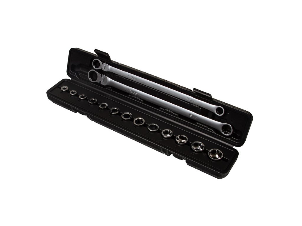 Oboustranné ráčnové očkové klíče s kloubem a průchozí hlavice, sada 15 dílů – MAR-POL