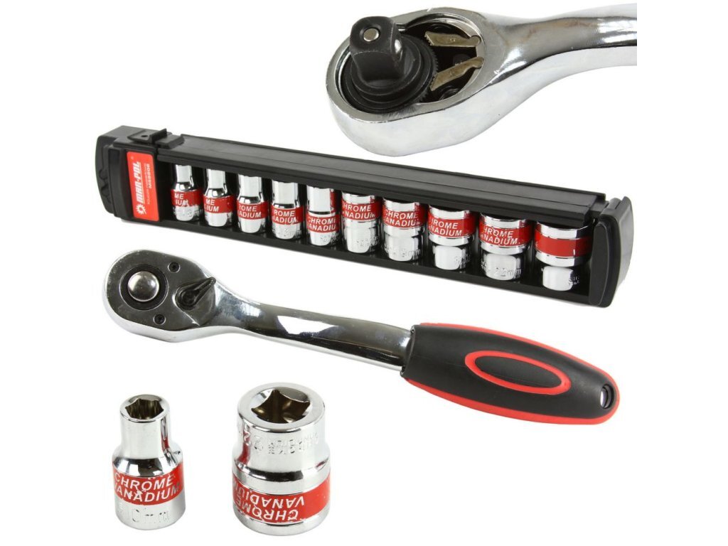 Nástrčné hlavice 8-24mm, 1/2", 10ks s ráčnou MAR-POL