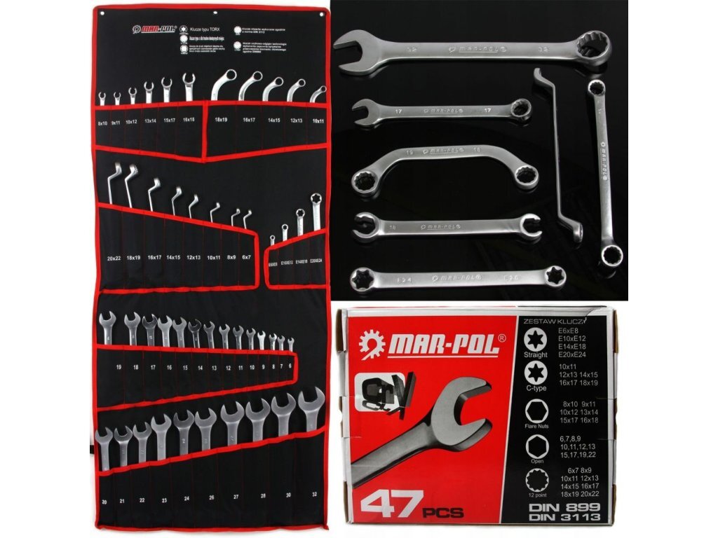 Velká sada klíčů 47ks, očko-otevřené, zahnuté, S klíče, TORX, brzdové trubky, CrV MAR-POL, skládací obal