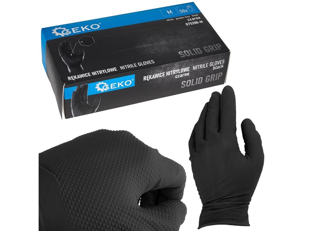 Nitrilové rukavice Solid Grip 3D, pevné, odolné chemikáliím, 50 ks, černé, velikost M - GEKO