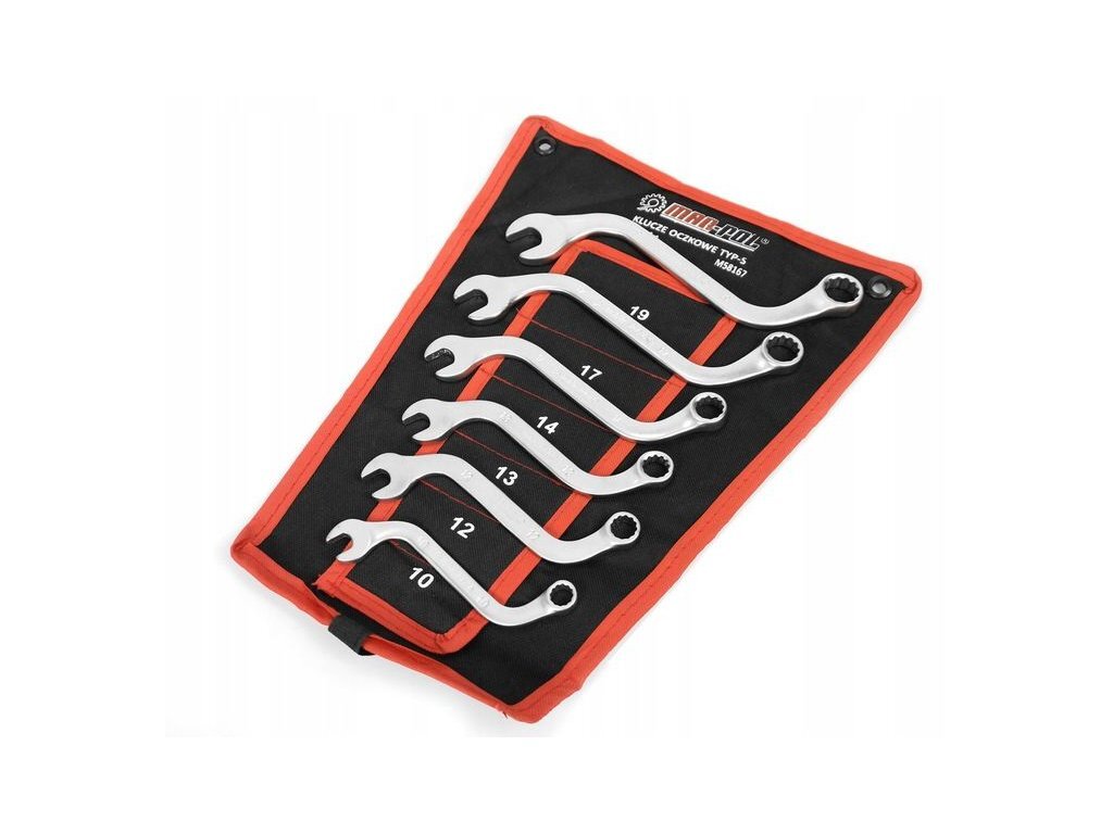 Klíče očkové-otevřené, S-typ, 6ks 10-19mm CrV MAR-POL, skládací obalVelikosti: 10, 12, 13, 14, 17, 19 Materiál: CrV przeczytaj całość