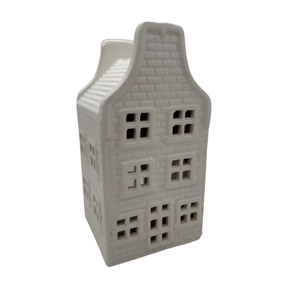 Keramický domeček na čajovou svíčku, bílý, 19 cm