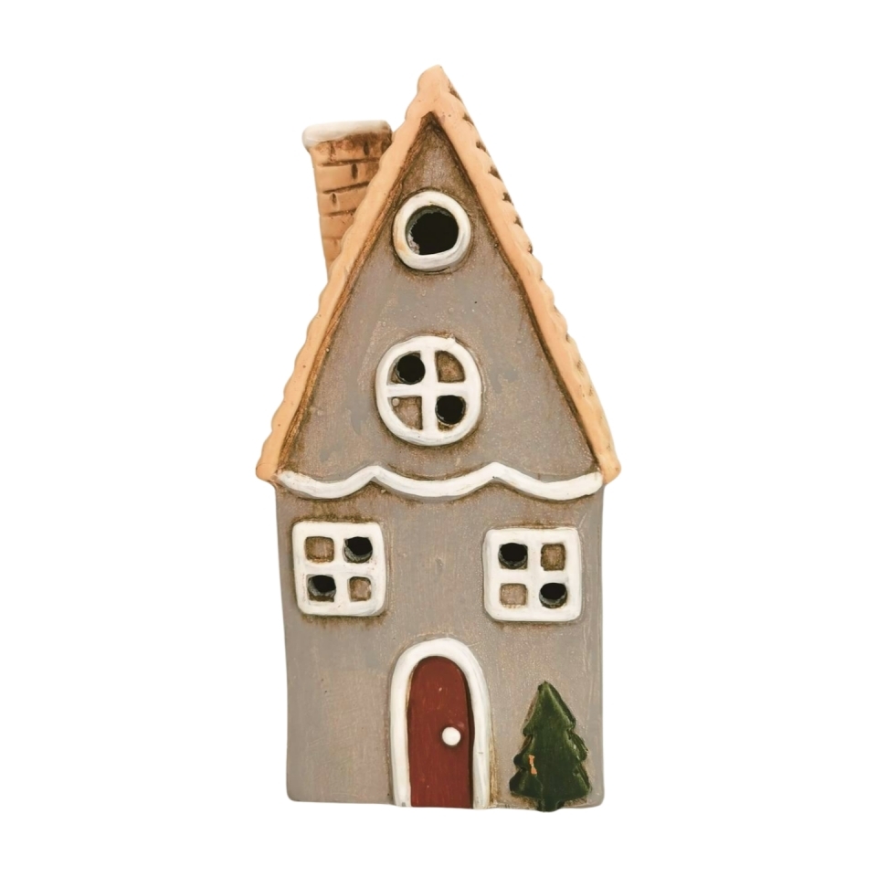 Šedý keramický domeček LEDKrásná dekorace, kterou lze využít k celoročnímu použití.Propracované detaily a sytá barva.Rozměry:výška: 17,5 cmšíře: 8 cmhloubka: 6,5 cmmateriál: keramikabarva: šedá, béžová