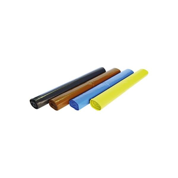Sada barevných LDPE pytlů (černý, hnědý, modrý, žlutý) v roli pro barevné třídění odpadů;Balení 4 x 5 pytlů, 40 ?m, 120,0 l;Výrobek z chráněných pracovních míst – koupí podpoříte zaměstnanost zdravotně znevýhodněných pracovníků;Černý - směsný odpad, hnědý - bioodpad, modrý - papír, žlutý - plasty przeczytaj całość