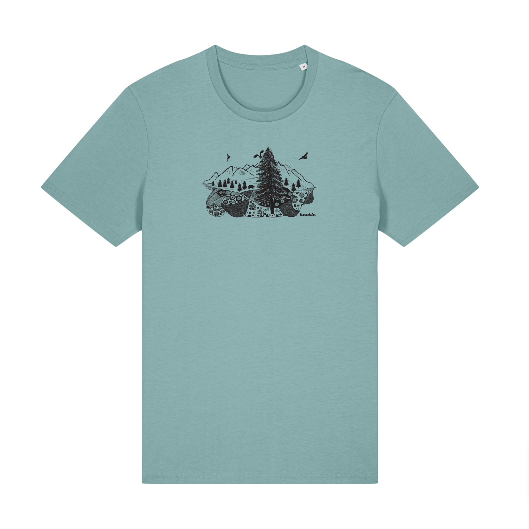 Tričko Lesní krajina modrozelené Tyrkysové XXL