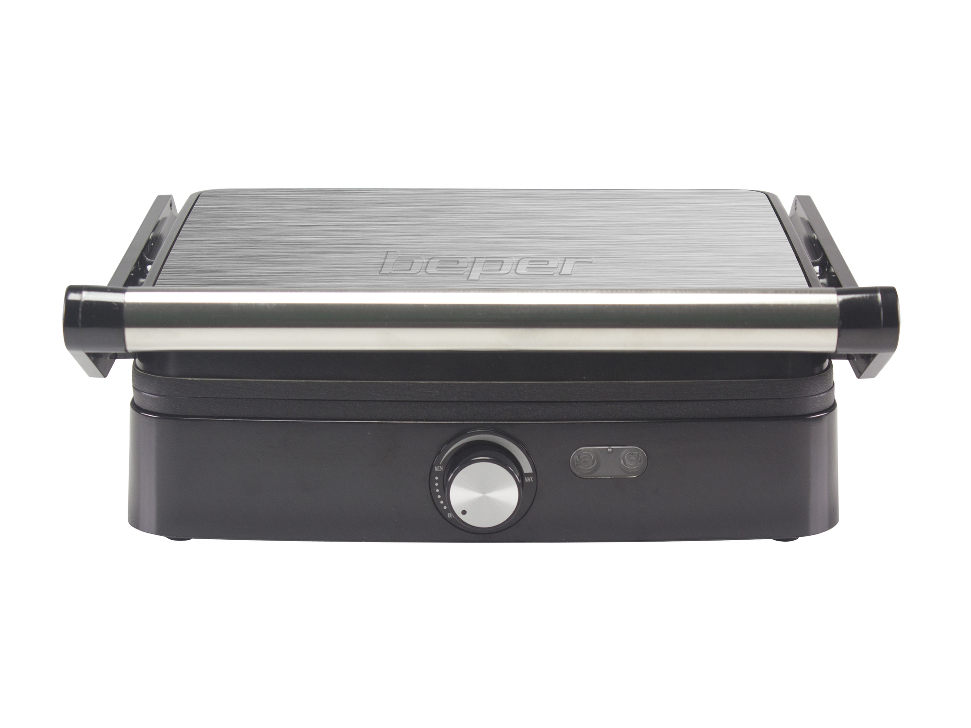 Kontaktní gril v elegantním stříbrno-černém provedeníIdeální pro grilování masa, uzenin, zeleniny, ryb i pro zapékání baget a sendvičů2 žebrované grilovací desky z litého hliníkuNepřilnavá povrchová úprava grilovacích desekMožnost rozevření grilu do roviny o 180° pro dvojnásobnou grilovací...