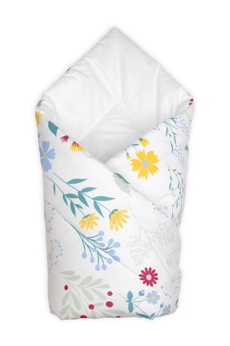 Kojenecká zavinovačka Klasik Flóra, bílá s potiskem; bílá