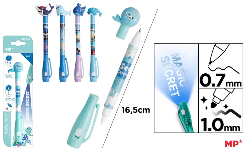 Długopis Szpiegowski UV z podwójną końcówką 0.7/1.0mm Morskie Zwierzaki, Main Paper