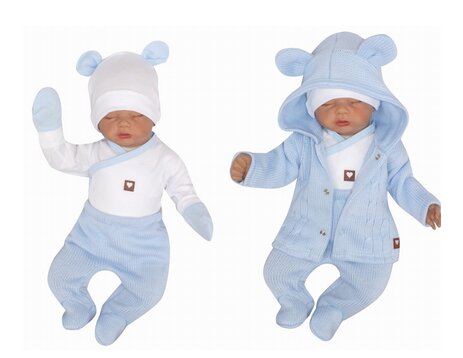 5-dílná kojenecká soupravička pletená do porodnice - modrá, bílá, vel. 62; 62 (2-3m); bílá, modrá