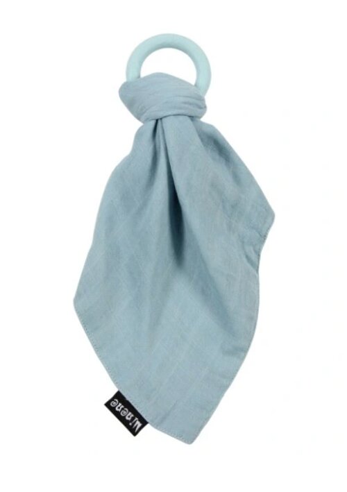 Silikonové kousátko s mušelinovým přítulníčkem - modré, Minene; modrá; 100 % bavlna, silikon