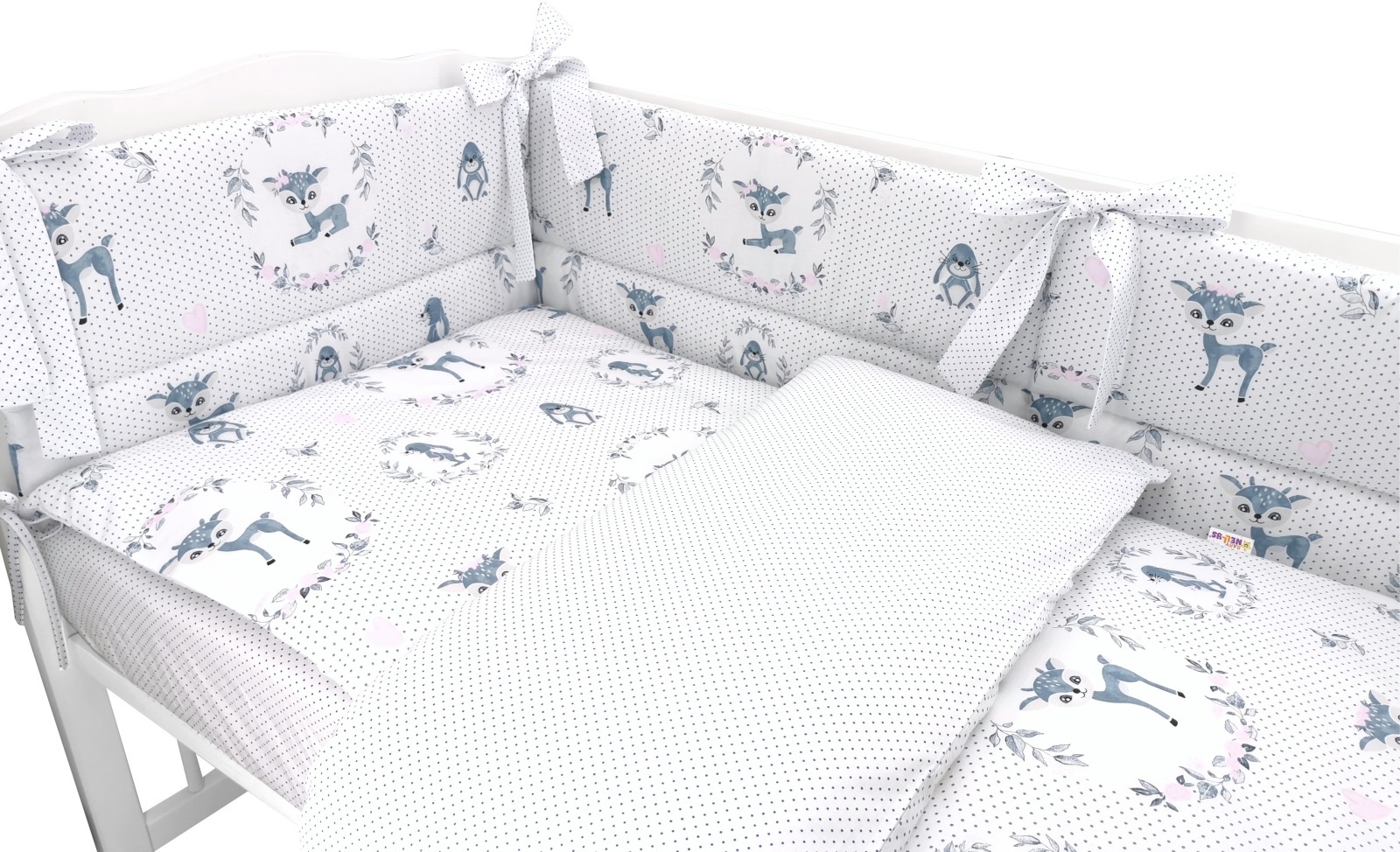 Materiál:Povlečení - 100% bavlna.Mantinel: Svrchní část 100% bavlna, výplň duté vlákno - hypoalergenní.I. Jakost.Sada obsahuje:Rovný mantinel cca 30x180cm.Povlak na peřinku: cca 120x90 cm, 135x100 - dle výběru.Povlak na polštářek: cca 40x60cm.Zapínání povlečení:Bezpečné, není na knoflíčky ale na...