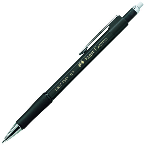 Ołówek automatyczny Grip 1347 Faber-Castell w metalicznym kolorze czarnym. Popularny ołówek automatyczny w nowym atrakcyjnym designie. Wygodny i precyzyjny. Wysoce ergonomiczny, dzięki nowej antypoślizgowej, gumowej strefie uchwytu. Specjalna chowana do wewnątrz osłonna zabezpieczająca grafit...