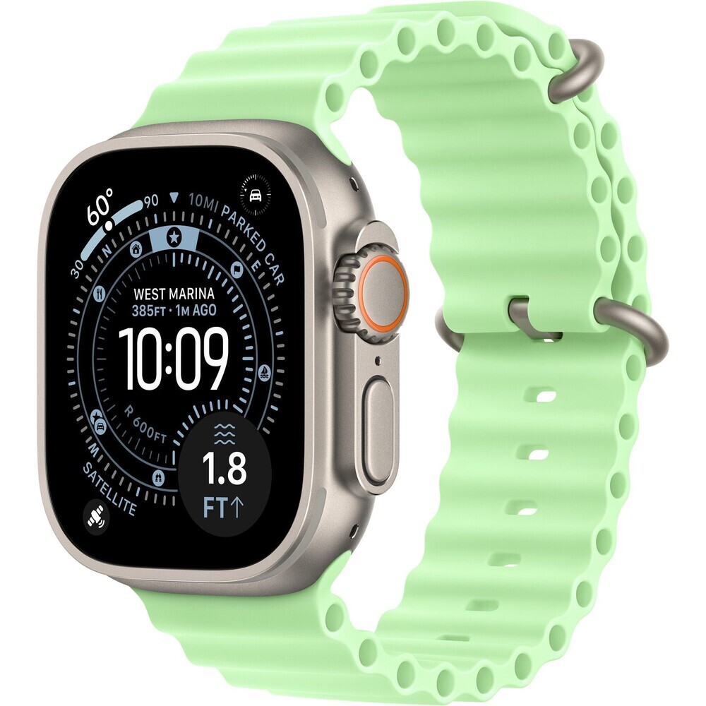 Apple Watch 49/46/45/44mm neonově zelený Oceánský řemínek přírodní titan