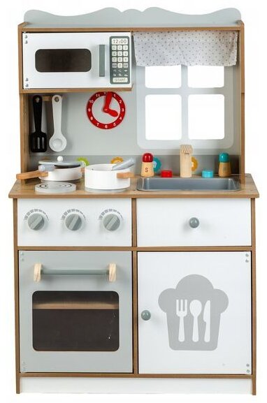 Dětská útulná kuchyňka od značky ECOTOYS je vhodná pro každého malého kuchaře nebo kuchařku! Kuchyňka je vyrobena z kvalitního dřeva. Součástí kuchyňky je sporák s 4 plotýnkami, trouba, mikrovlnná trouba, dřez s kohoutky odlišné podle barvy, úložný a odkládací prostor. Děti se mohou při...