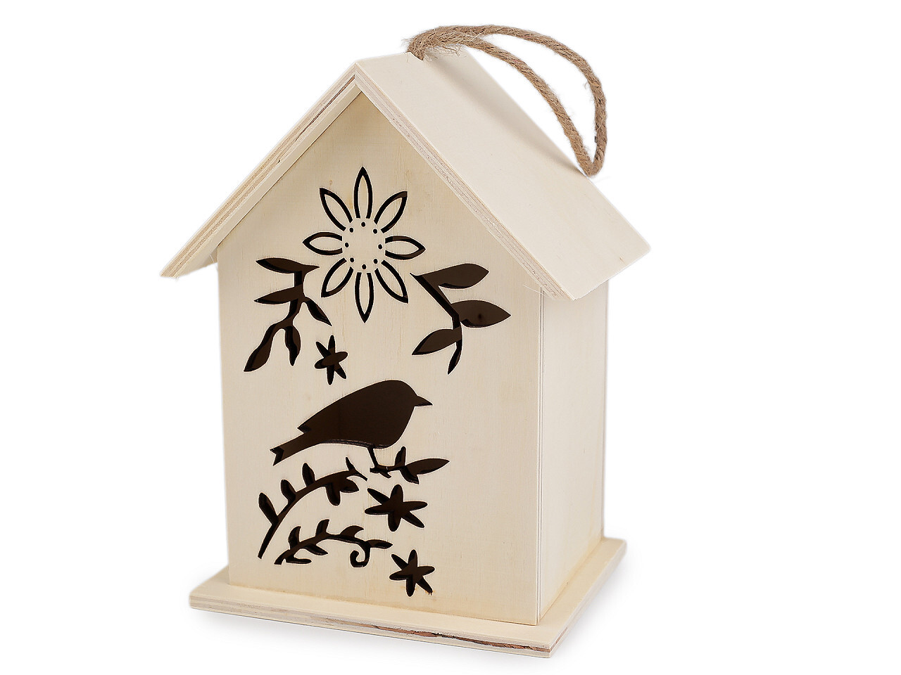 Závěsný dřevěný domeček / budka k domalování - 1 ks - 2 přírodní sv.