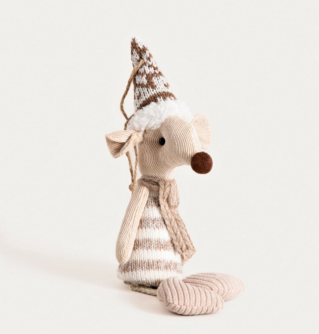 Roztomilý design myšky v pruhovaném svetru. - Ideální k zavěšení na vánoční stromeček, okno nebo jako dekorace na stůl. - Neutrální barevné provedení v béžové a hnědé barvě. - Pletené a chlupaté detaily pro útulný vzhled. - Přívěsek myška v pruhovaném svetru 24 cmPřívěsek MOUZE je útulná vánoční...