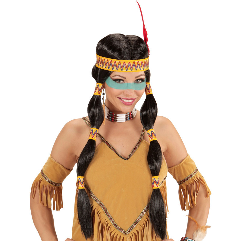 Černá paruka indiánky s culíky a čelenkou Barva: černá Materiál: 100% polyester Určeno pro: dámská Typ paruky: dlouhá s culíky przeczytaj całość