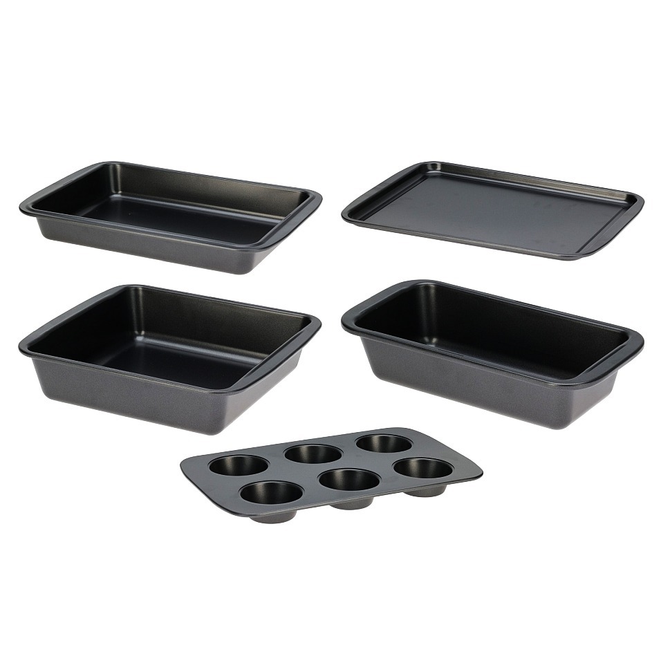 Pečicí sada – 5 ks, uhlíková ocel s nepřilnavým povlakemObjevte kompletní pečicí sadu z kvalitní uhlíkové oceli s odolným nepřilnavým povlakem, která vám umožní připravit chléb, koláče, muffiny i cukroví s maximálním komfortem. Díky univerzálním velikostem a elegantnímu šedému designu je tato...