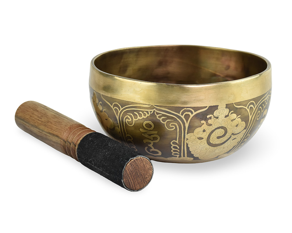Zdobená zpívající mísa s jednoduchou dřevěnou paličkou. Když člověk poprvé uslyší zvuk tibetské mísy, vždy ho to nějakým zvláštním způsobem osloví. Tibetské zpívající mísy mají na člověka nezanedbatelné a zcela zřejmé účinky. Díky křišťálově čistému nenapodobitelnému zvuku obnovují harmonickou...