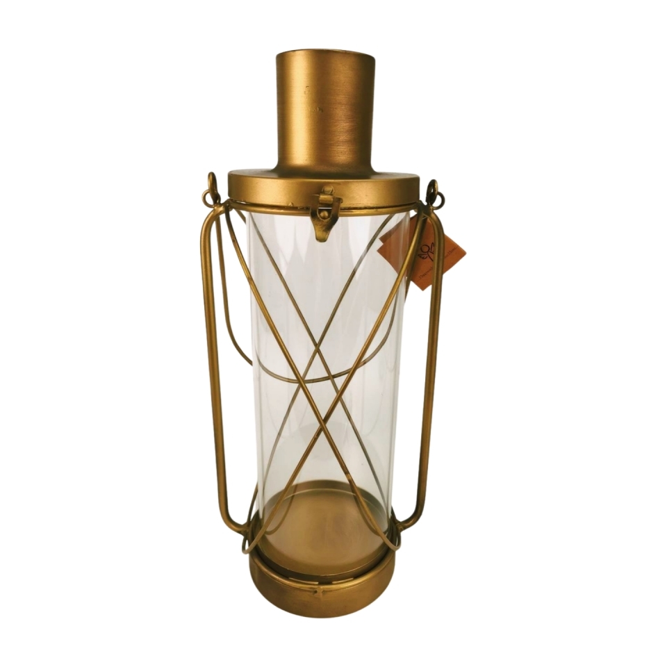 Zlatá kovová lucerna na svíčku 43 x 15 cmmateriál: kovbarva: zlatározměr: 43 x 15 x 15 cm