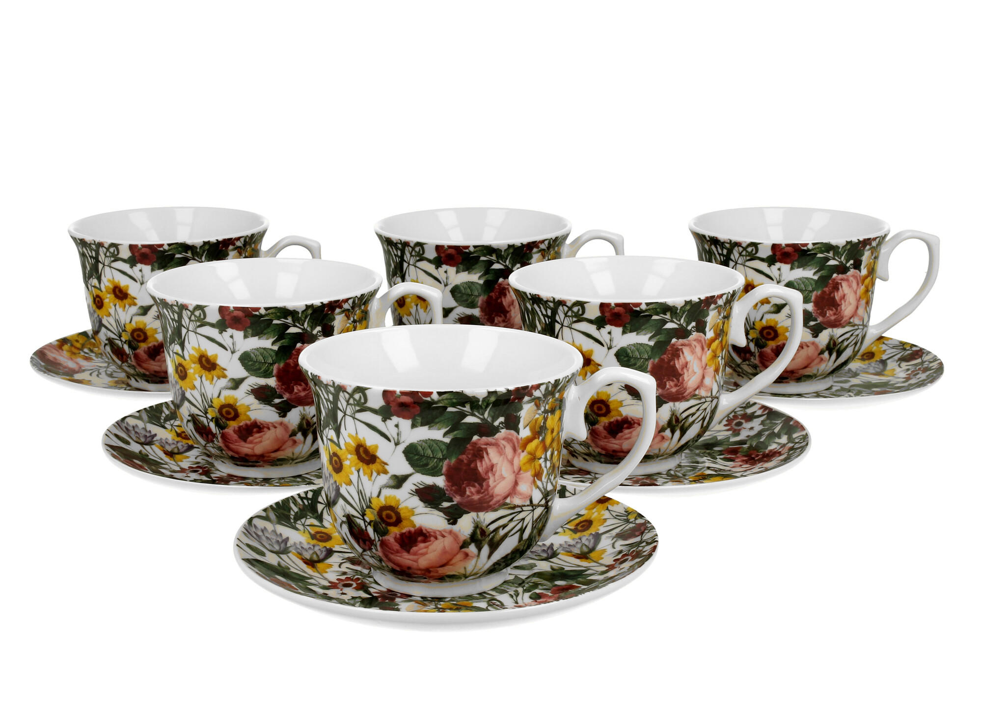 Komplet sześciu filiżanek ze spodkami SPRING wchodzący w skład serii Crocus, wykonany z porcelany New Bone China, charakteryzującej się elegancką i naturalną kremowo - białą barwą z delikatnym połyskiem, a także wyjątkową wytrzymałością. Linia zdobiona motywem gęsto malowanych wiosennych kwiatów...