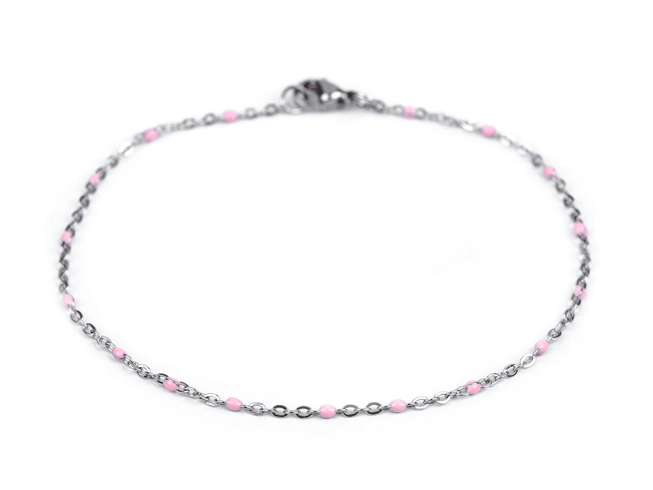 Náramek z chirurgické oceli s korálky - 1 ks - 2 pudrová