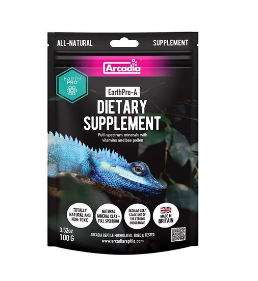 Ideální produkt pro všechny běžně chovanéplazy. Bezpečný, přírodní potravní doplněk s plným spektrem vitamínův práškové formě.Arcadia EarthPRO-A neobsahuje vitamin D3,nehrozí proto jeho předávkování. Je však vždy nutné používat hospolečně s kvalitním osvětlením, které poskytuje UVB...