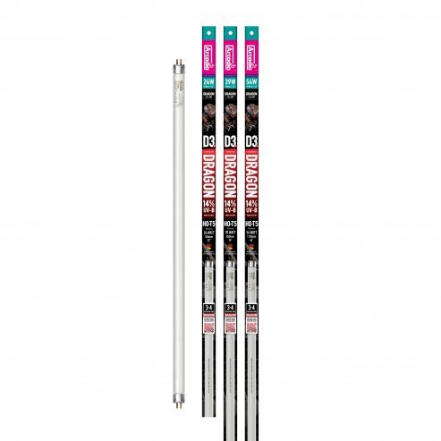 Světová premiéra jedinečného produktu,který je první svého druhu vůbec. Zářivka HQ T5 s obsahem UVB 14% ,30% UVA.DragonLamp poskytuje neskutečné množstvísvětla (2× více luxů než běžné zářivky T5 typu Desert), optimálnívýdej UVB záření pro pouštní druhy plazů, má teplotu barev 8.000K aindex CRI...