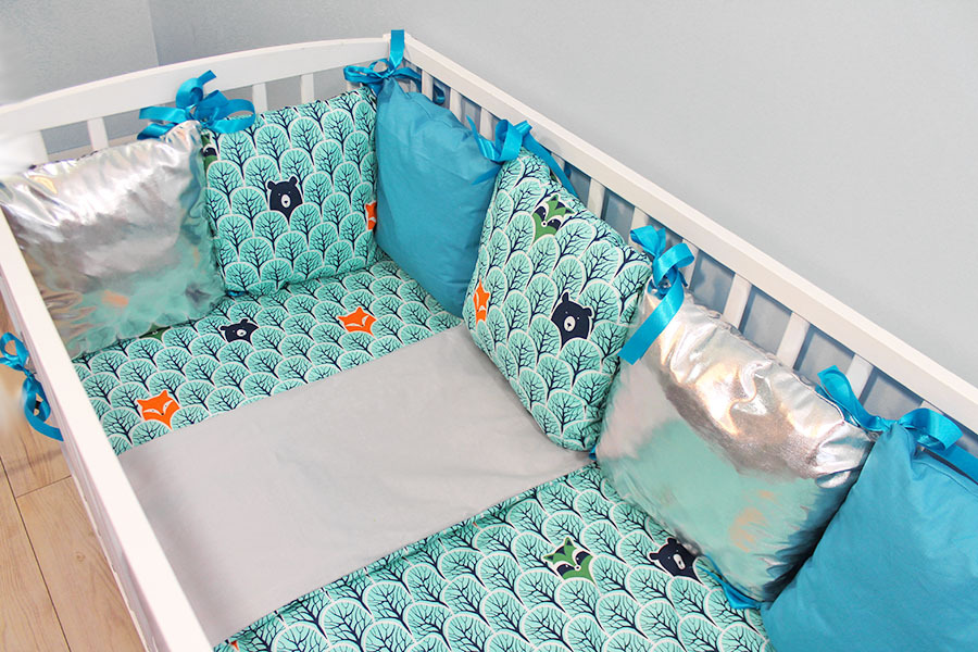 Baby Nellys Polštářkový mantinel s povlečením Shine - lesík tyrkys, 120x90, 40x60cm; tyrkysová; bavlna,hypoalergenní duté vlákno